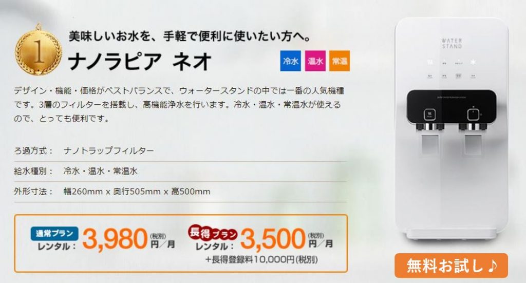 無料お試しキャンペーンで、ウォータースタンドの良さを体験してみてはいかがでしょうか?